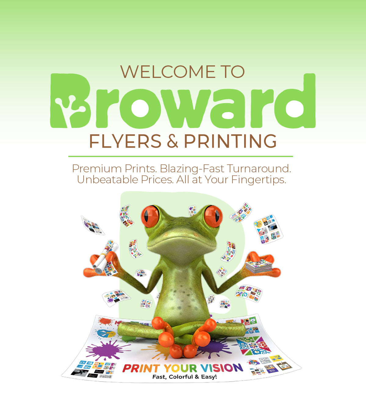 Broward Flyers & Printing, headquartered in South Florida, has been a trusted nationwide provider for over 20 years. Committed to eco-friendly printing without sacrificing quality, we specialize in high-quality prints, fast turnaround times, and competitive pricing!